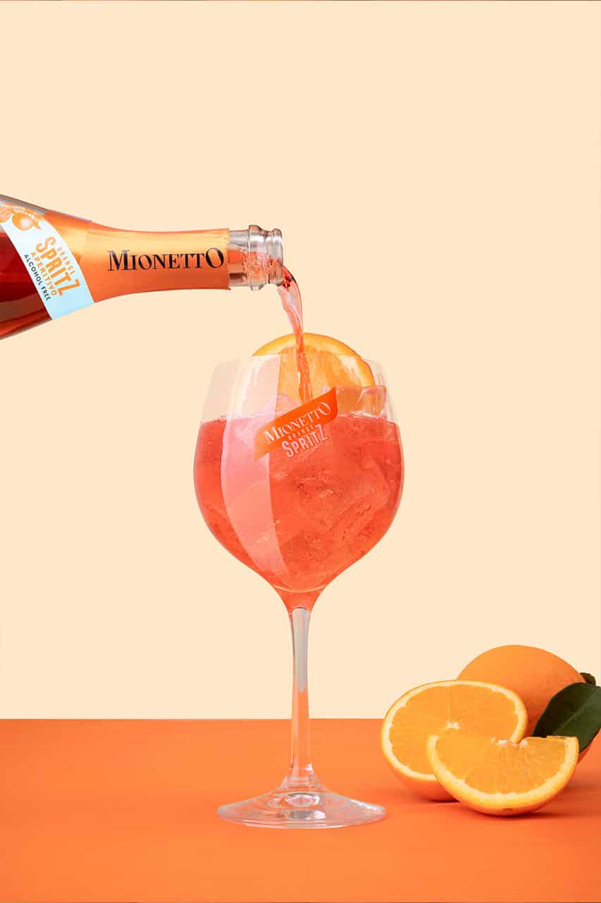 Inspiriert vom traditionellen italienischen Spritz bietet Mionetto Orange Spritz Aperitivo Alkoholfrei Ready to Serve ein frisches, genussvolles und trinkfertiges Erlebnis. Seine Rezeptur aus 100% natürlichen Aromen unterstreicht die duftenden Noten des Schaumweins aus Venetien, harmonisch abgestimmt mit der natürlichen Süße der Orange und einer angenehmen bitteren Nuance, die von ausgewählten Zitrusfrüchten und Kräutern